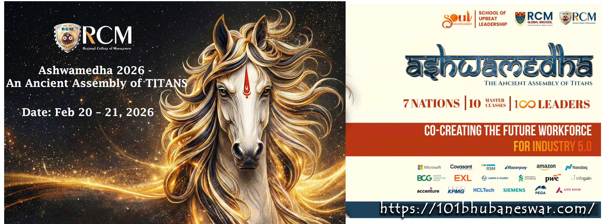 ASHWAMEDHA 2026 – Ashwamedha 2.0 at RCM Bhubaneswar – proudly stands among these major global management conclaves in India. With the theme “Co-Creating the Future Workforce for Industry 5.0,” this two-day Global Leadership Conclave will be held on 20th and 21st February 2026 at The Regional College of Management (RCM), Bhubaneswar, bringing together 100+ global leaders to shape the next generation of business and management professionals.
